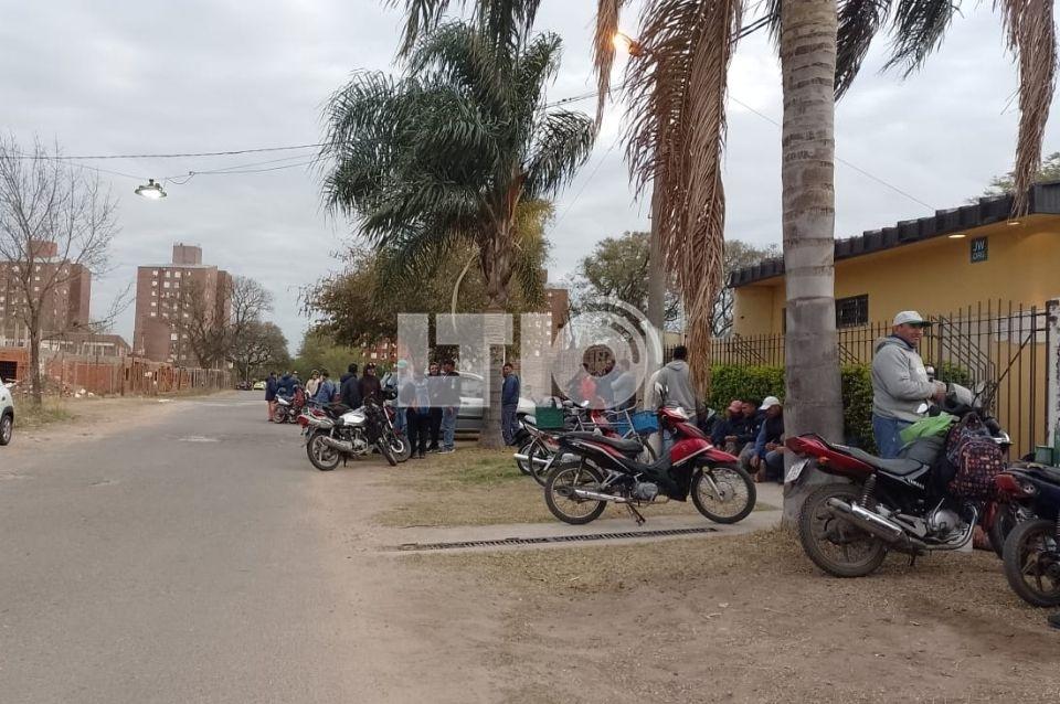 Esta mañana, un grupo de trabajadores se manifiestan en Lisandro de la Torre y Santiago de Chile, por el despedio de 77 obreros que realizaban tareas en la construcción de 183 viviendas en el barrio La Florida, un proyecto del gobierno provincial.