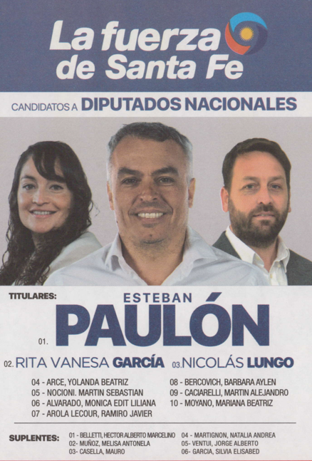Por La fuerza de Santa Fe, encabeza la lista Esteban Paulón, seguido por Vanesa García y Nicolás Lungo.