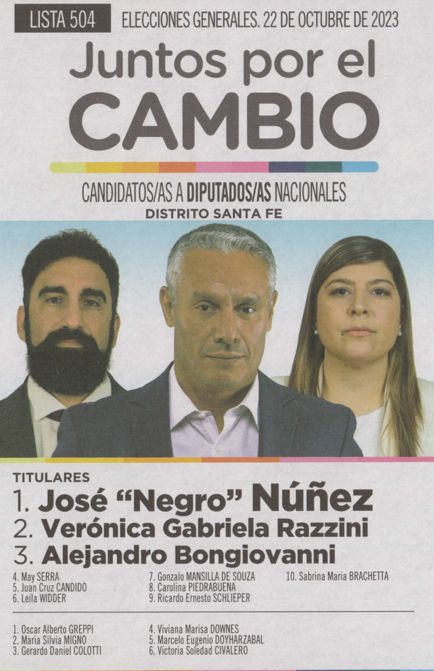 En Juntos por el Cambio, la lista está conformada por José Núñez, Verónica Razzini, Alejandro Bongiovanni, May Serra, Juan Cruz Cándido.