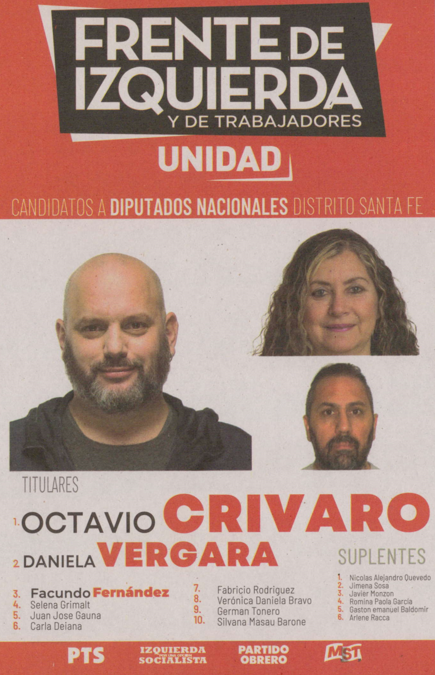 En tanto, por el Frente de izquierda, los candidatos son Octavio Crivaro, Daniela Vergada, Facundo Fernández, Selene Grimault, Juan José Gauna.