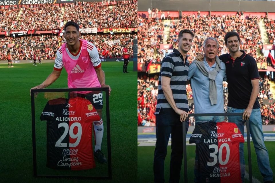 En la previa del partido ante River por la 9ª fecha de la zona A de la Copa de la Liga Profesional (fue empate 2-2), se vivió un momento muy emotivo con los reconocimientos que Colón le hizo a Rodrigo Aliendro y a Eduardo Vega. Al primero, por visitar por primera vez en el Brigadier López luego de ser campeón en la Copa de la Liga 2021.