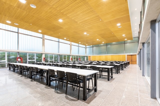 Su tipología de doble peine le otorga gran rendimiento de uso y permite que la totalidad de los espacios estén en contacto con los exteriores, garantizando su iluminación y ventilación natural en un entorno de máxima calidad ambiental, lo que redunda en un balance positivo de confort y ahorro energético. La tectónica del edificio pone en valor la estructura y la utilización de materiales nobles de la región, confiriéndole un lenguaje contemporáneo.