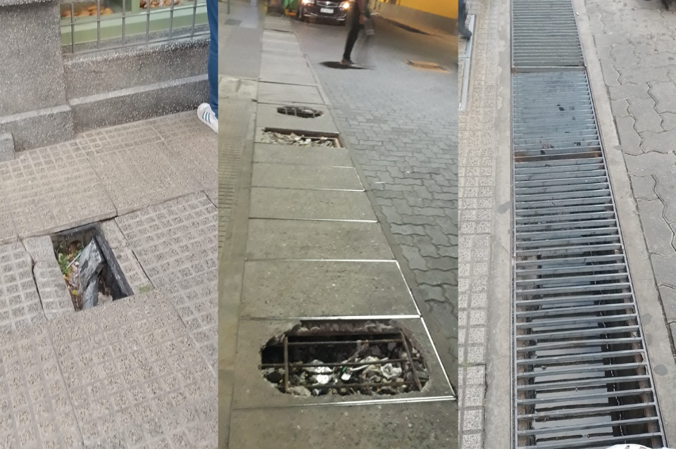 La semana pasada, una señora cayó en uno de estos desagües porque esta rejilla estaba levantada. La mujer que terminó internada, se recupera lentamente.