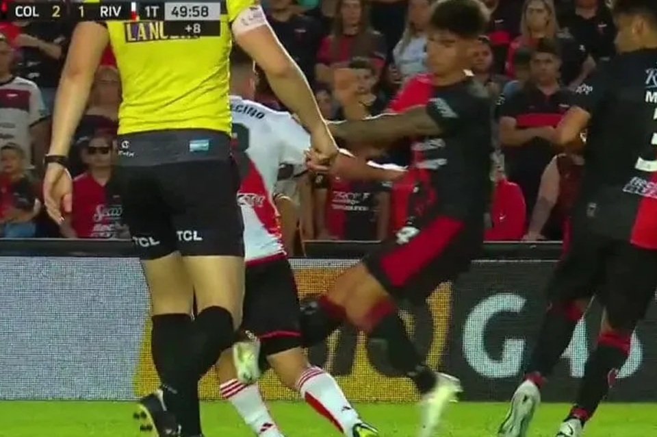 Stefano Moreyra se fue expulsado en el empate parcial de Colón ante River por 2-2. El mediocampista rojinegro le dio una patada a Agustín Palavecino y el juez Nicolás Rámirez le mostró la tarjeta roja en el cierre de la primera mitad.