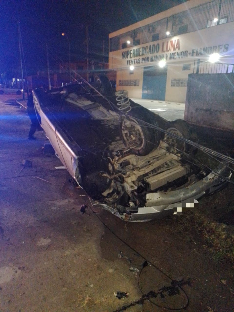 En la madrugada, un conductor protagonizó un impactante accidente de tránsito en inmediaciones San Juan y Pedro de Vega en barrio Los Hornos. donde un conductor de 28 años, chocó contra una columna de luz, la arrancó y terminó volcando.