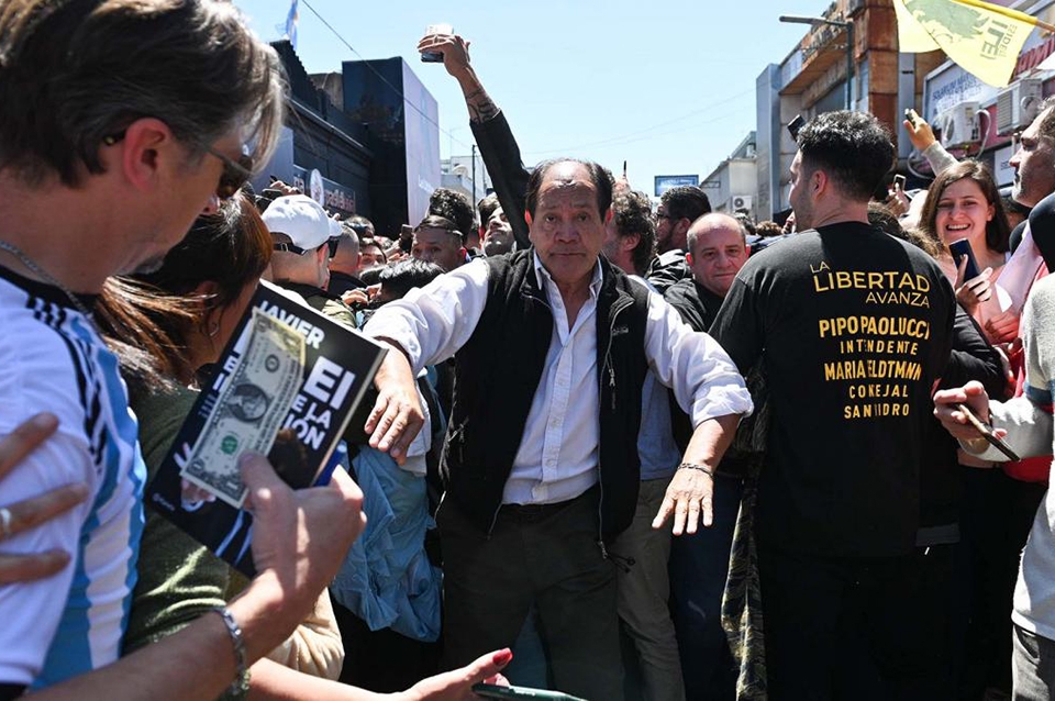 El candidato se desplazó por la conocida zona comercial y sus militantes tampoco mostraron pancartas con los dólares que llevan la cara del diputado nacional, algo que también era recurrente en las manifestaciones libertarias.