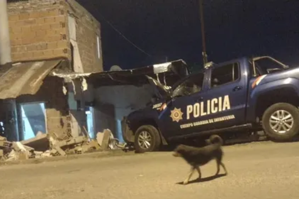 El lunes por la noche, una familia del barrio Industrial ubicado en la zona norte de la ciudad de Rosario, se salvo de una tragedia cuando un móvil policial se despistó e impacto contra uno de los muros de la vivienda.