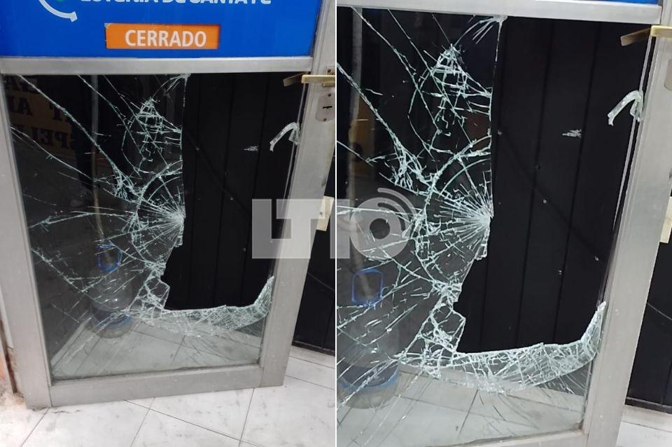 En la madrugada, delincuentes rompieron el blindex de una agencia de quiniela ubicado en Rivadavia y Obispo Gelabert, frente al Shopping Recoleta.