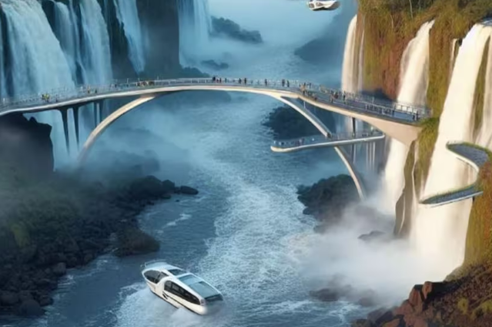 A raíz de su popularidad, la inteligencia artificial, como ya realizó en anteriores ocasiones, ideó un plano futurista de las Cataratas de cómo se verían de acá a 100 años. Bajo el filtro del editor de imágenes Bing/Dall-e 3, la herramienta tecnológica recopiló algunos datos para tener una idea de cómo es el lugar y cómo estará confeccionado en 2123.
