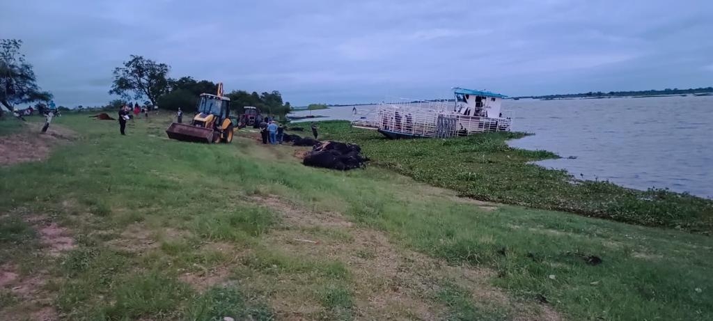 Una vez logrado poner la balsa en su estado normal, se toma conocimiento que la persona desaparecida se encontraba en el interior de los corrales de la balsa apretada entre los animales.