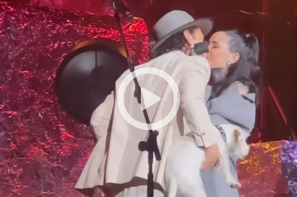 El cantante tomó a dos de los perritos, que son como hijitos de la pareja, y se arrodilló para pedirle nuevamente casamiento con su público como testigo. La hija de Marcelo no pudo contener la emoción y la gente, por supuesto, los aplaudió por varios minutos.
