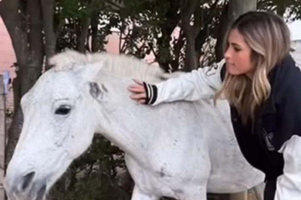 La modelo y actriz se acercó a un caballo para acariciarlo, pero el animal le jugó una mala pasada y le pegó una terrible patada. Después se asustó y se alejó de ella.
