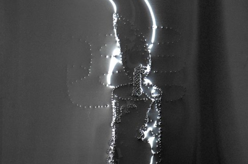 Como señala el curador en un texto que acompaña la muestra, en estas producciones, el punto entendido como la unidad básica de un elemento visual “va dejando un rastro en diferentes materialidades, dialoga con soportes frágiles y delicados como el papel, así también sobre la rigidez del metal que rechaza o cambia de dirección la luz, la sombra y el color. No importa el soporte para dejar en evidencia la delicadeza y la sutileza de cada resultado, acentuando el relieve mediante el contraste que genera la proyección de la sombra sobre las formas resultantes del gesto, el mismo punto”.