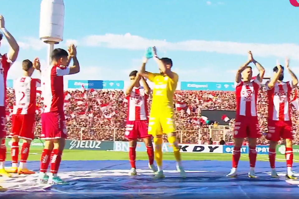 Como era de esperar, en el ingreso de los equipos, los hinchas rojiblancos armaron una verdadera fiesta.