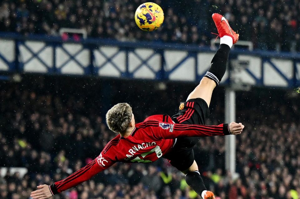 Manchester United, con un espectacular gol de "chilena" del argentino Alejandro Garnacho, venció como visitante a Everton por 3 a 0, en uno de los dos partidos que dieron continuidad hoy a la decimotercera fecha de la Premier League de fútbol de Inglaterra, que lidera Arsenal.
