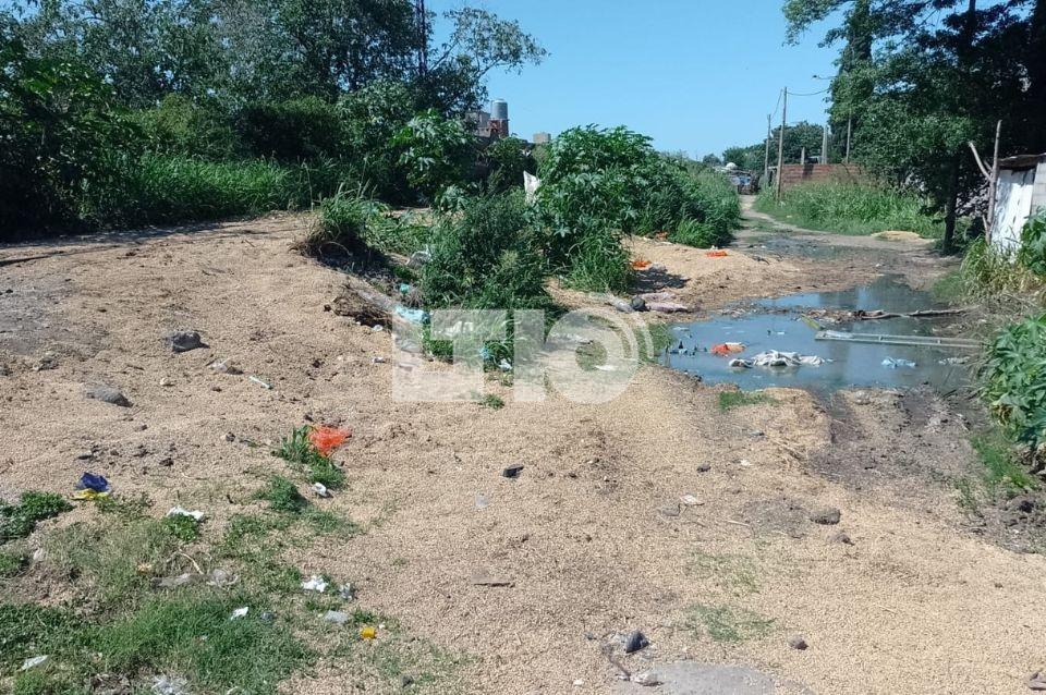Vecinos de barrio Santa Rosa de Lima denuncian que en calle Juan de Garay entre los Pasajes Liniers y Mitre cayó soja que delincuentes robaron del tren y por las lluvias se pudrió.