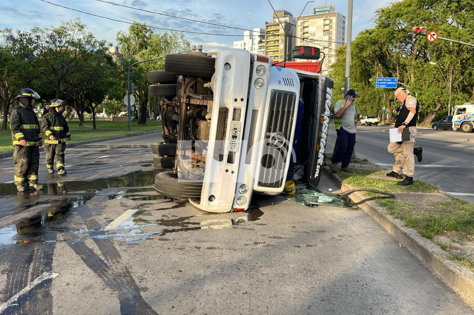 Se estiman que habrían encerrado el camión por eso se provoca el vuelco pero el chofer se encuentra en buen estado.