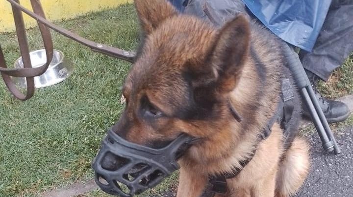 Más policías se sumaron para intentar disuadir, acompañados de dos pastores alemanes –Rocky y Chase– con bozales, y el agresor hizo estallar la botella contra el pavimento. Por los vidrios, los perros sufrieron cortes en las patas.