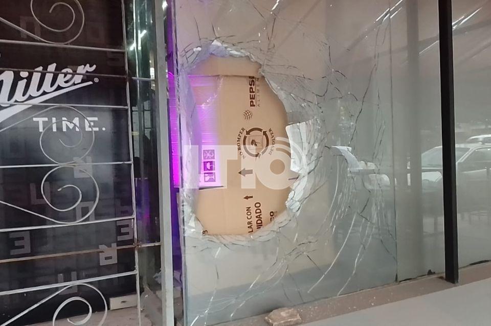 El delincuente rompió la vidriera con un adoquín y después terminaron de remover el blindex de una patada.