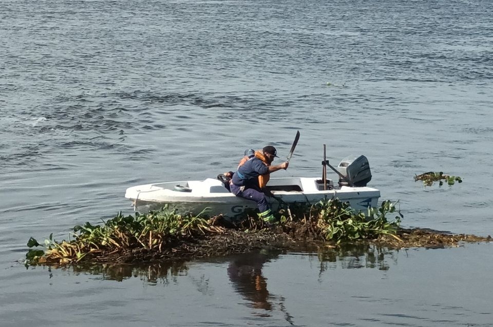 Para esto, están empleando una embarcación propia y asistencia de servicios especializados que remueven el material vegetal.