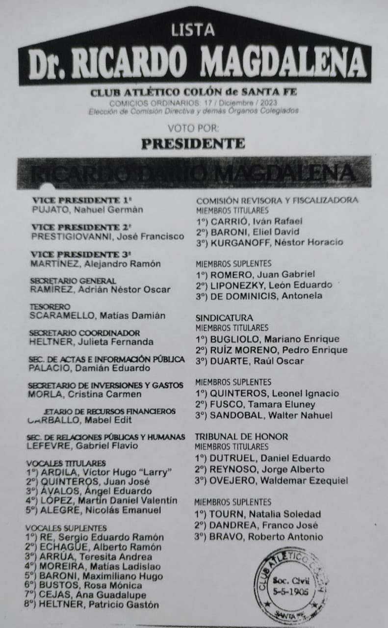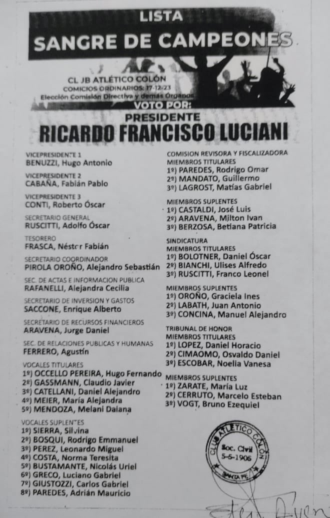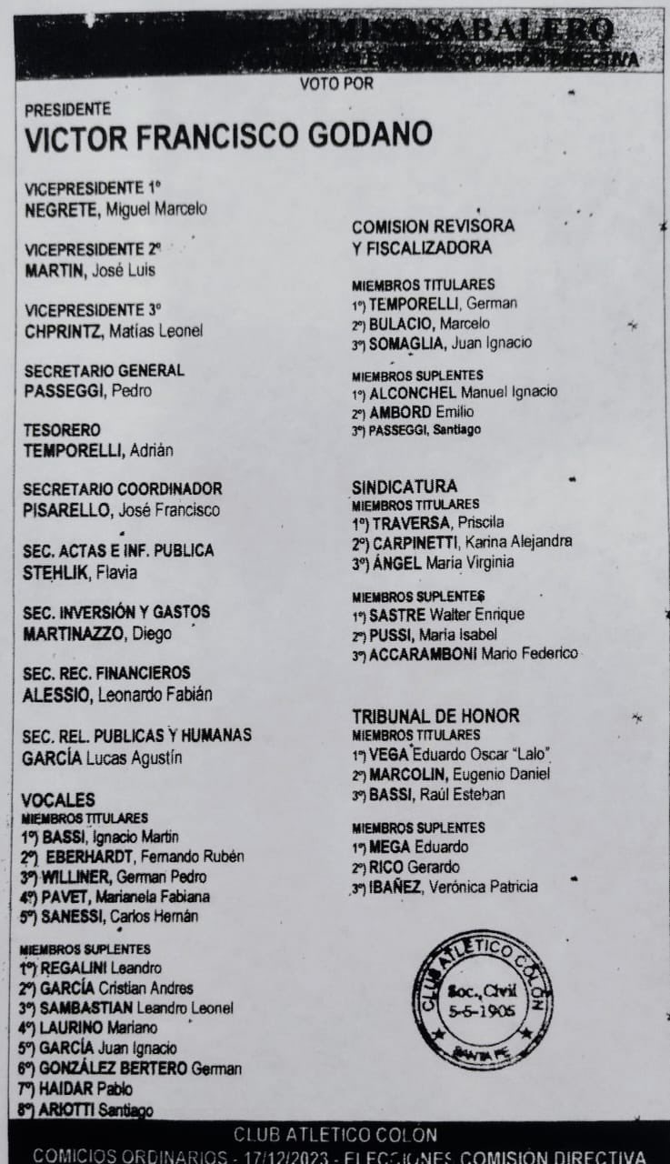 Colón se prepara para elegir a la nueva conducción el próximo 17 de diciembre cuando, en el Roque Otrino, se lleven a cabo las elecciones. Se da un momento complicado tras el descenso y con José Vignatti fuera de la escena, tras su decisión de alejarse de política.