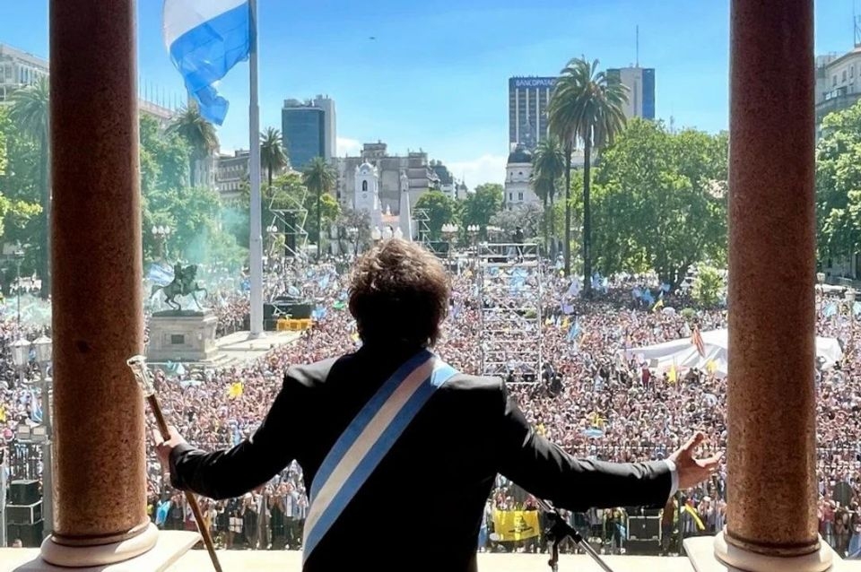 El flamante presidente Javier Milei saludó desde el balcón de la Casa Rosada a la multitud que se congregó en la Plaza de Mayo y remarcó que llegada al poder "ha decretado el fin de la noche populista".