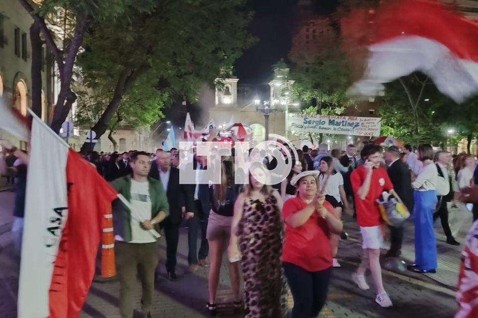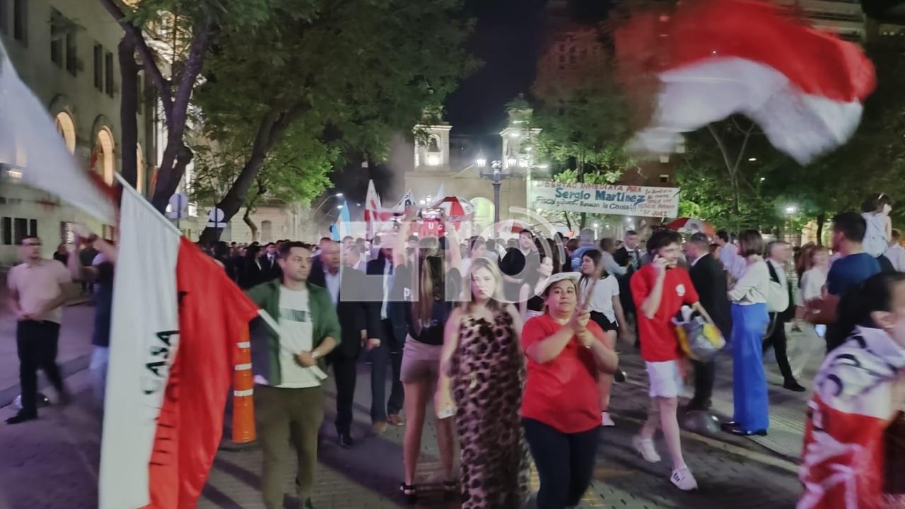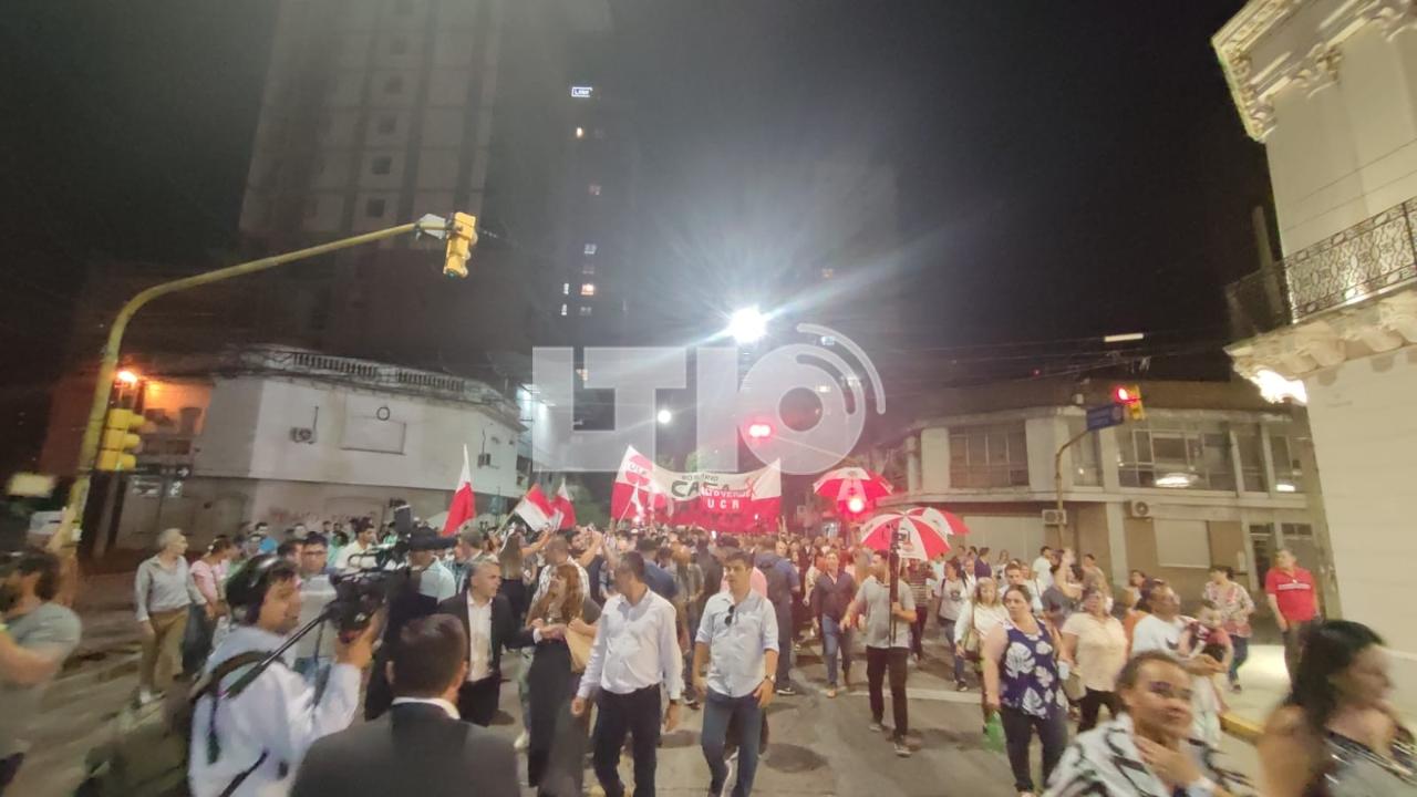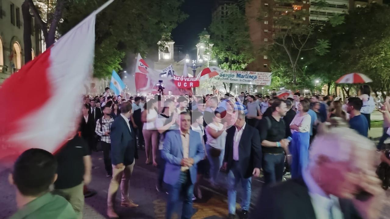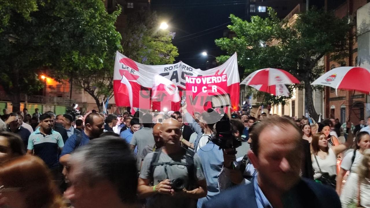 La caminata fue en medio de una gran cantidad de personas, banderas y boinas rojas y blancas, los colores de la Unión Cívica Radical. Además, con mucha alegría, entonaron cantos de aliento por la llegada de Pullaro a la gobernación, el primer gobernador radical después de 60 años.