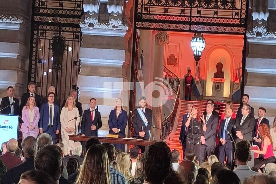 Posteriormente, el gobernador de la provincia se dirigió a Casa de Gobierno, donde recibió los atributos de mando del saliente Omar Perotti.