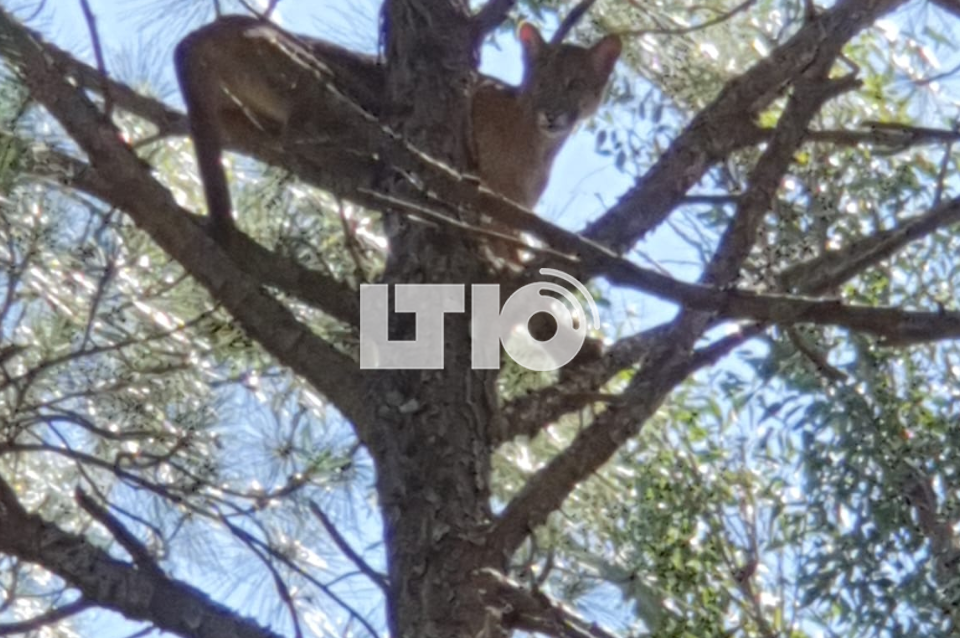 Eduardo Lorinz, presidente comunal de Arroyo Leyes, contó por LT10 que “desde ayer estamos con este inconveniente, con un animal salvaje que fue encontrando prácticamente frente a nuestra comisaria, a pocos metros de la ruta 1” y detalla que estaba en un pino a unos 15 metros de altura pero no pudieron bajarlo.