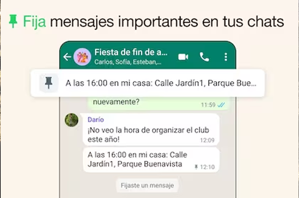 WhatsApp anunció hoy que habilitó la opción de fijar (o anclar) mensajes dentro de un chat. Así como ahora es posible fijar hasta tres usuarios en la lista de contactos, para que queden primeros sin importar otras conversaciones, ahora es posible, en el mensajero instantáneo, elegir un mensaje y hacer que quede siempre visible en una conversación.