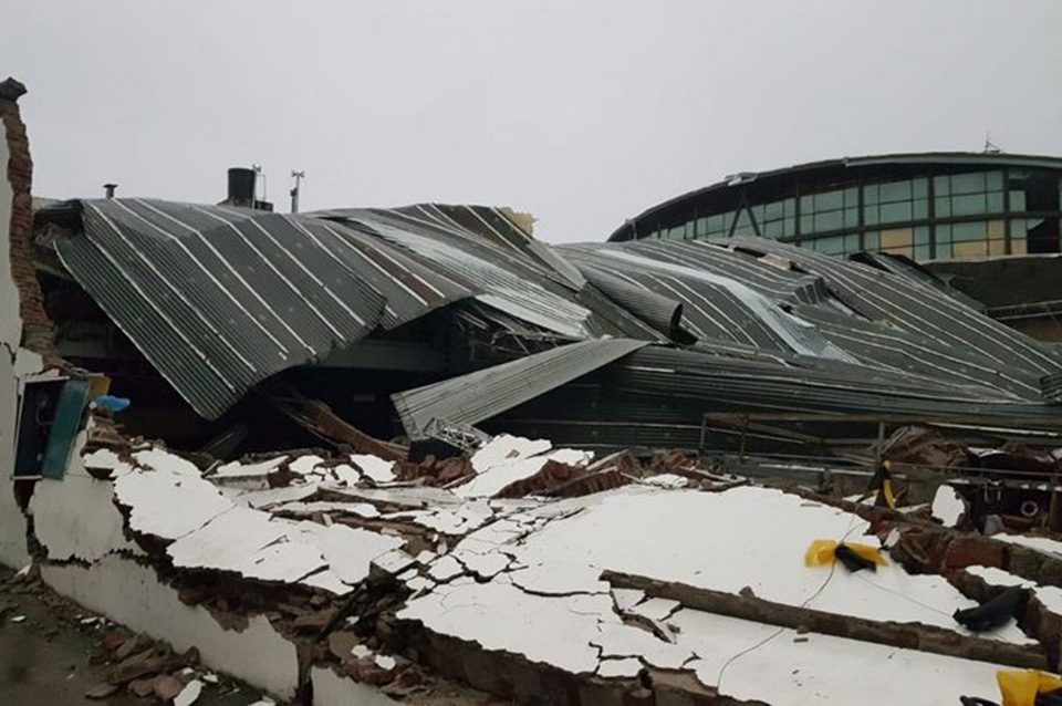 Allí, cedió un muro y parte del techo, cuando se desarrollaba un encuentro deportivo en sus instalaciones.