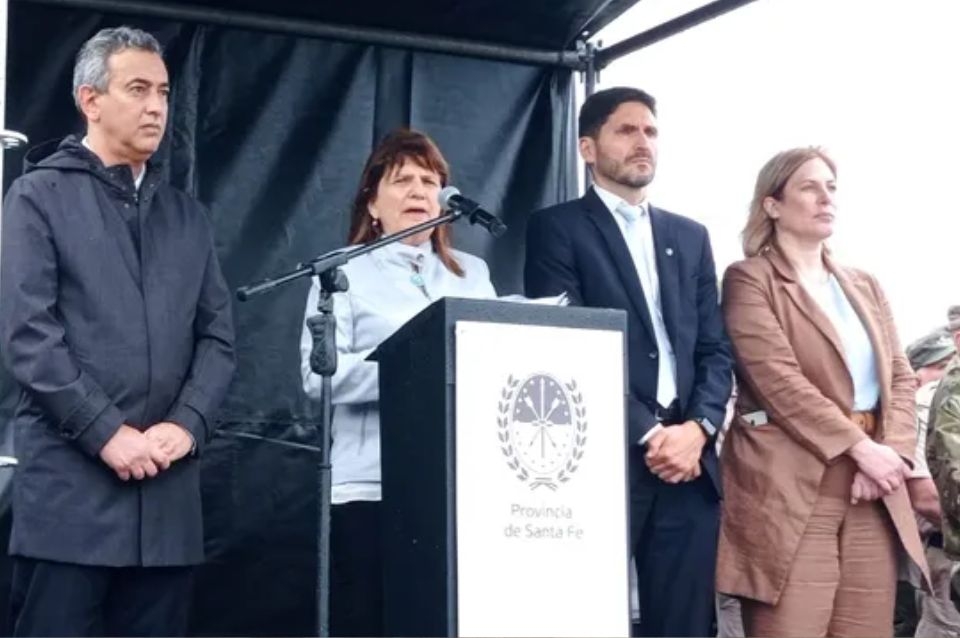 La ministra de Seguridad de la Nación Patricia Bullrich arribó este lunes a Rosario para anunciar junto al gobernador Maximiliano Pullaro la puesta en marcha del Plan Bandera, cuyo fin es luchar contra el narcotráfico que asedia al sur provincial.