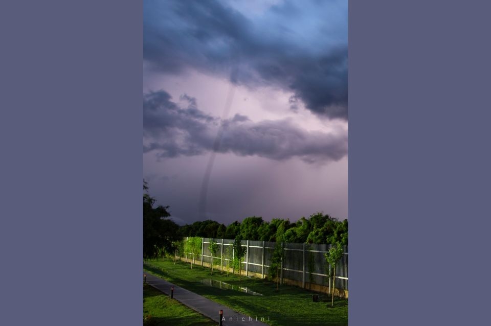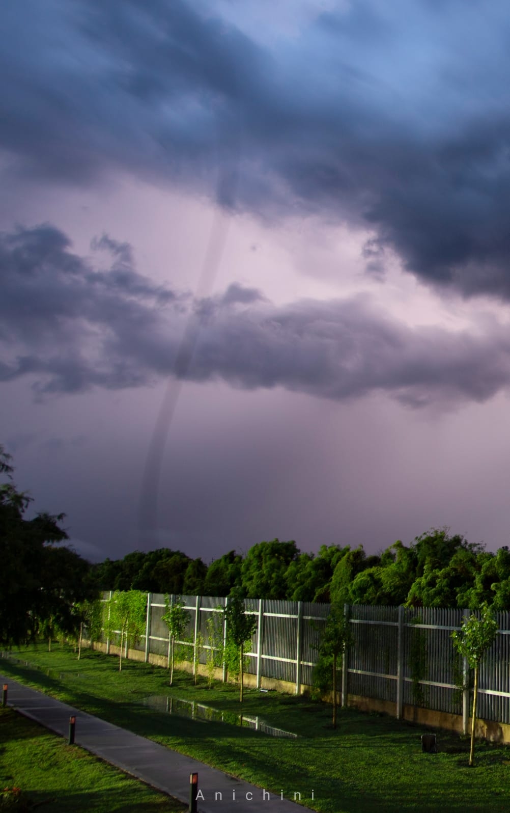 Jorge Anichini, fotógrafo, se encontraba en Sunchales cuando empezó la tormenta y sacó una foto y captó un extraño fenómeno meteorológico: “Apenas pasó por arriba del hotel, un viento muy fuerte de 105km/h y paró la lluvia de golpe. Saqué el equipo y empiezo a fotografiar la tormenta que se está yendo y en una de ellas veo que hay como un segmento largo vertical, al fondo del horizonte. Volviendo atrás veo el inicio de la “tromba”, una especie de línea larga que sale de la nube y llega al suelo”.