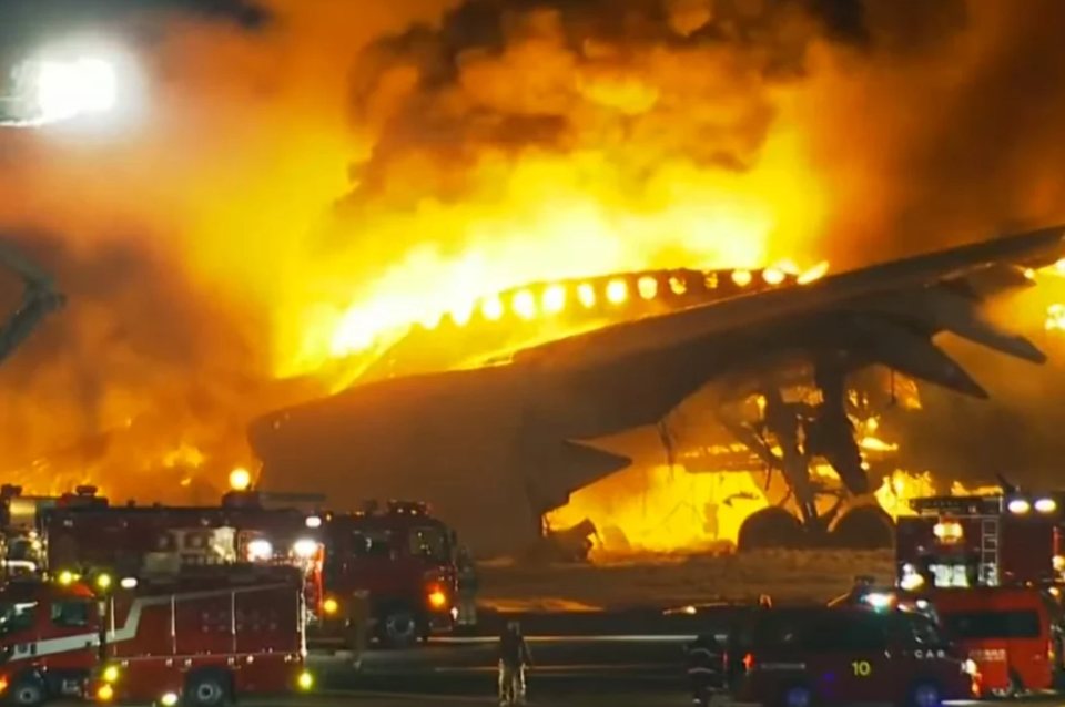 Ocurre en el aeropuerto de Haneda tras un aterrizaje forzoso de la aeronave. Dotaciones de bomberos y rescatistas trabajan a contrarreloj. Imágenes impactantes.