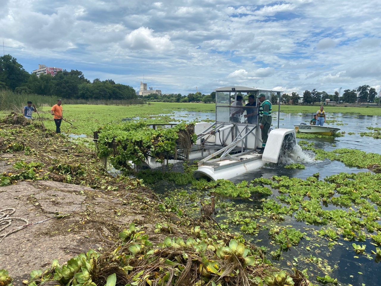 Este domingo por la mañana comenzó a trabajar en el Lago del Parque General Belgrano la cosechadora acuática, con el objetivo de poder retirar los repollitos de agua y avanzar en el saneamiento del lago.
