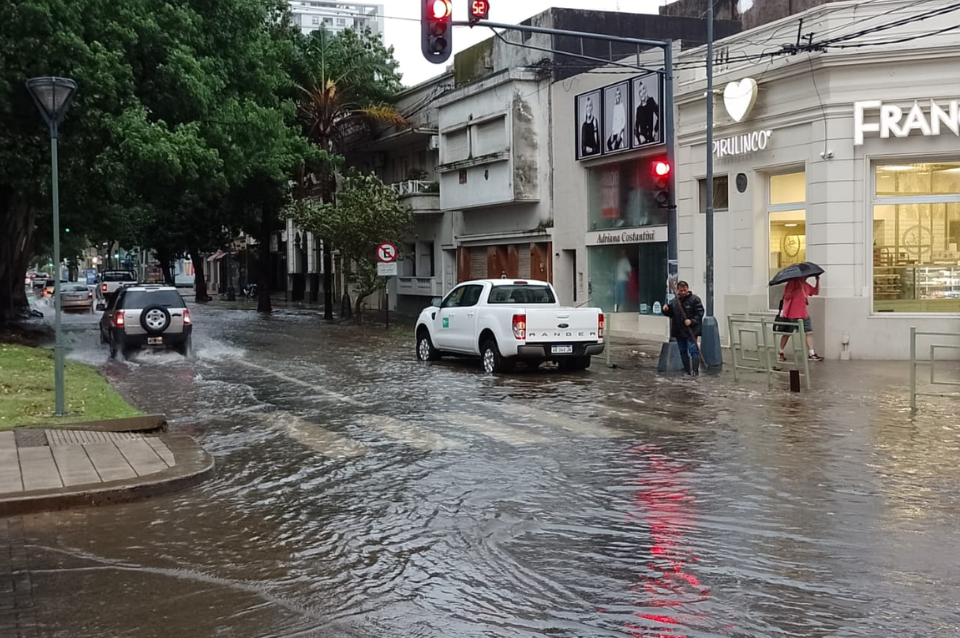 #AtenciónAutomovilistas | Gran acumulación de agua en Bv. Gálvez y República de Siria. "Les pedimos a los automovilistas que bajen la velocidad y sean solidarios con los comercios a los que les ingresa el agua por el oleaje" dice @LuisAmsler desde el #MóvilLT10 pic.twitter.com/0ZpjT8oFL8
