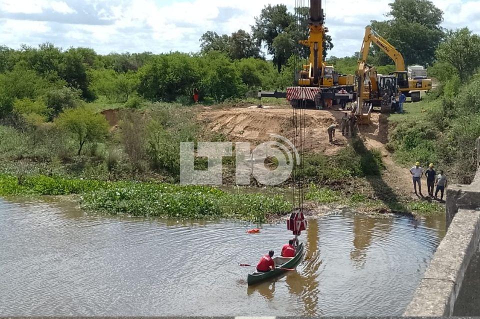 Con el trabajo conjunto de la retropala y la retroexcavadora lograron retirar el camión con acoplado del agua. Ahora los buzos tácticos continúan buscando al chofer que sigue desaparecido.