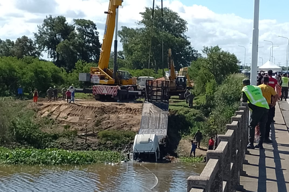 A los trabajos de limpieza que venía realizando una retropala se sumó una retroexcavadora montada sobre oruga. El trabajo conjunto de las dos grandes maquinarias hizo que cerca de las 16.30 de este jueves, logren sacar fuera del agua el camión con su acoplado. Los buszos tácticos presentes en el lugar, pudieron confirmar que a la cabina del camión le faltaba el parabrisas, y dentro no había ningún cuerpo.