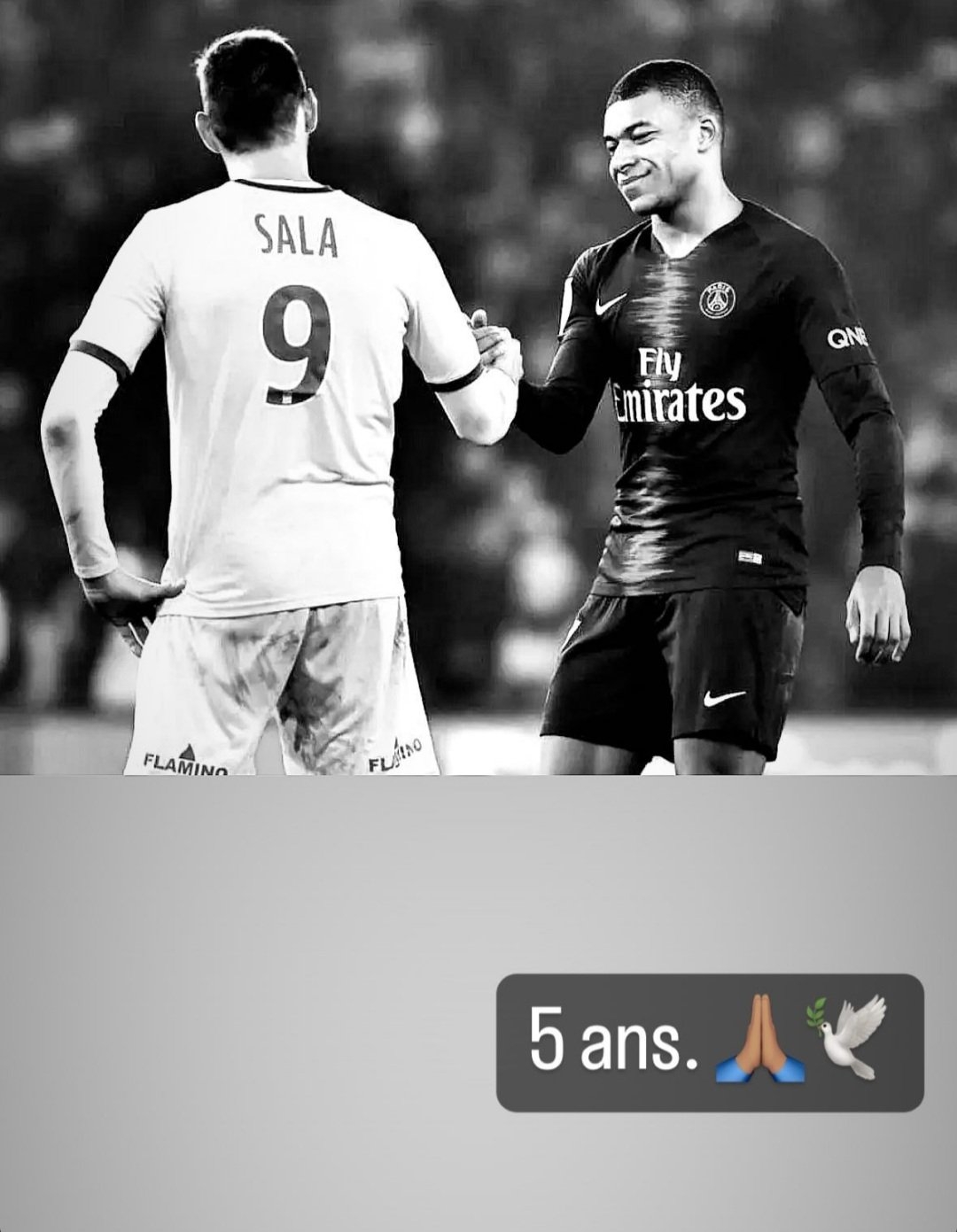 El francés Kylian Mbappé recordó al argentino Emiliano Sala, exfutbolista del Nantes de Francia, al cumplirse este domingo cinco años del accidente aéreo en el que perdió la vida cuando viajaba rumbo a Gales para sellar su incorporación al club Cardiff City.