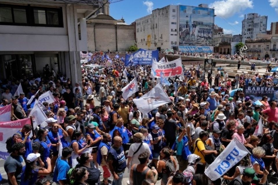 Una multitud se congregó este miércoles al mediodía en el Monumento a la Bandera en Rosario, en el marco del primer paro general contra el gobierno de Javier Milei organizado por la CGT, las dos CTA, trabajadores de la economía popular, movimientos sociales y multisectoriales, entre las 12 y la medianoche. Algunas entidades partieron desde Corrientes y avenida Pellegrini y permanecieron aproximadamente una hora en la plaza 25 de Mayo, en Buenos Aires y Córdoba.
