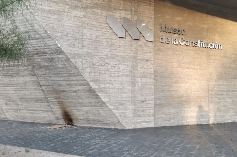 Esta mañana, personal policial detuvo a dos jóvenes, de 16 y 19 años que estaban prendiendo fuego uno de los laterales del Museo de la Constitución.