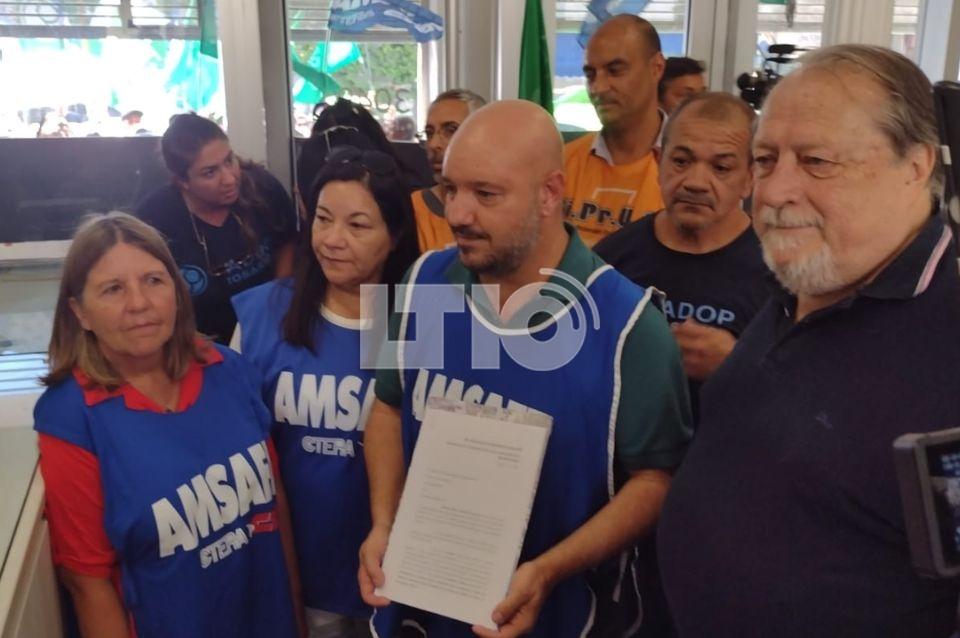 "Nosotros hoy venimos a presentar una denuncia, denunciar por el incumplimiento del acta paritaria y venimos a exigir al Ministerio de Trabajo porque no solo debe mediar, sino hacer cumplir las actas paritarias" detalló Alonso.