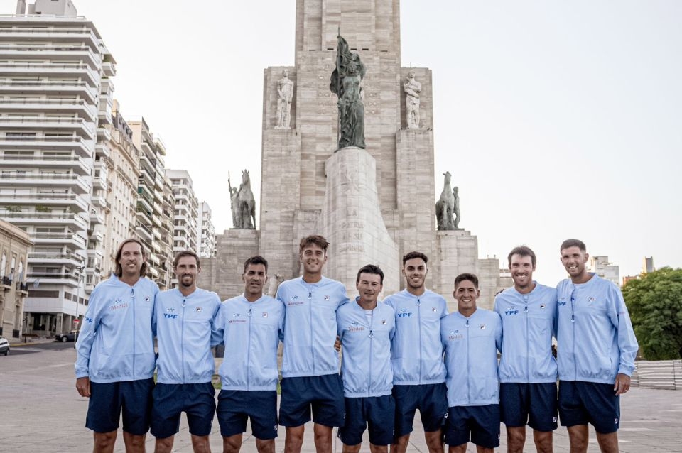 El equipo de Argentina que se encuentra instalado en Rosario para jugar este fin de semana ante Kazajistán por los Qualifiers 2024 de la Copa Davis, realizó este jueves la foto oficial en el Monumento Histórico Nacional a la Bandera.