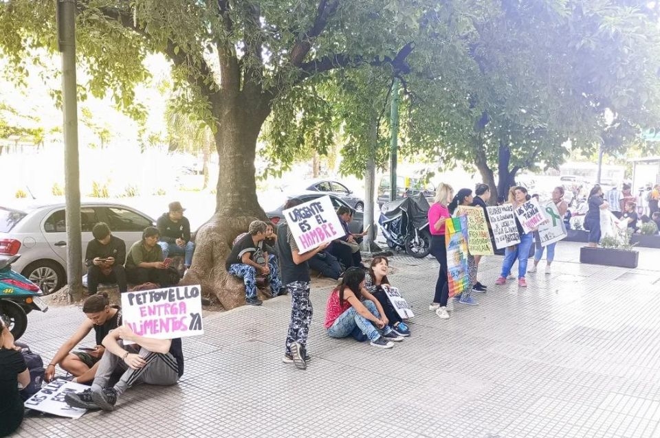 Apostados en la esquina de Juncal y Carlos Pellegrini, los manifestantes reclaman la intervención del ministerio para el desarrollo de las ollas populares y la asistencia a los comedores.