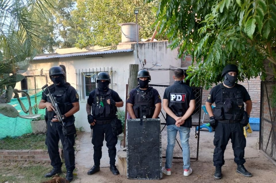 A raíz del hecho, personal de la Dirección Operativa de Investigación (PDI), tras una minuciosa investigación logró recolectar material e identificar a los presuntos autores del hecho delictivo y, con el recaudo legal correspondiente, allanaron el inmueble de uno de los sospechoso, donde lograron la detención de A.E.M. y el secuestro de 3 teléfonos celulares Samsung y un aparentemente aire comprimido.