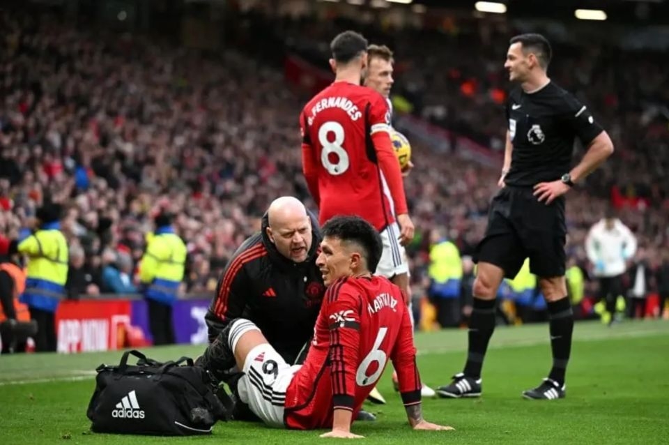 El defensor de Manchester United de Inglaterra, Lisandro Martínez, sufrió una lesión en el ligamento colateral de la rodilla derecha y la recuperación lo mantendrá "al margen del equipo al menos por ocho semanas".