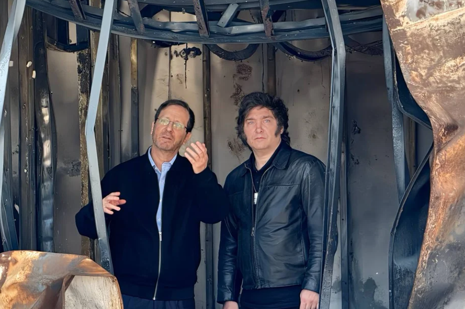 El líder libertario visitó el kibutz Nir Oz, ubicado a solo 2,5 kilómetros de la Franja de Gaza y uno de los lugares atacados por Hamás el 7 de octubre de 2023: asistió al lugar acompañado por el presidente israelí, Isaac Herzog.