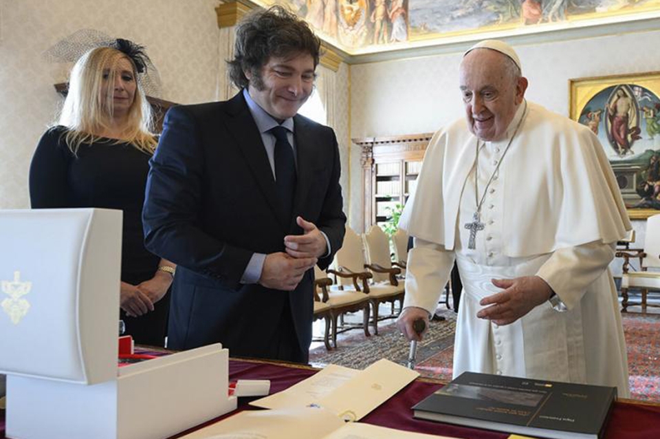 El presidente Javier Milei se reunió este lunes en el Vaticano con el papa Francisco en un encuentro de una hora, en la primera reunión privada entre ambos luego de los saludos que se intercambiaron este domingo en la canonización de la flamante santa argentina Mama Antula y tras la cual el mandatario presentó en la Secretaría de Estado de la Santa Sede su plan "para enfrentar la crisis económica" de la Argentina.