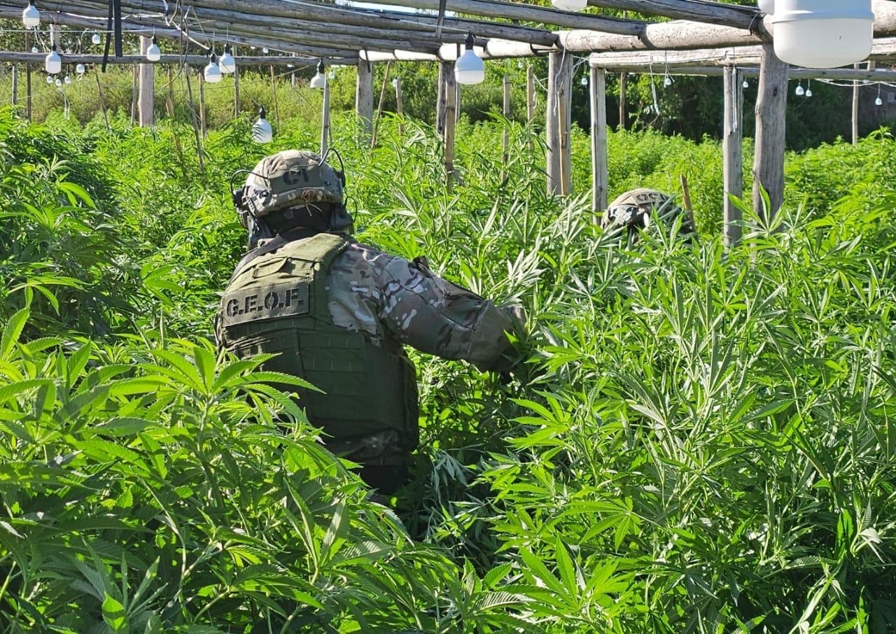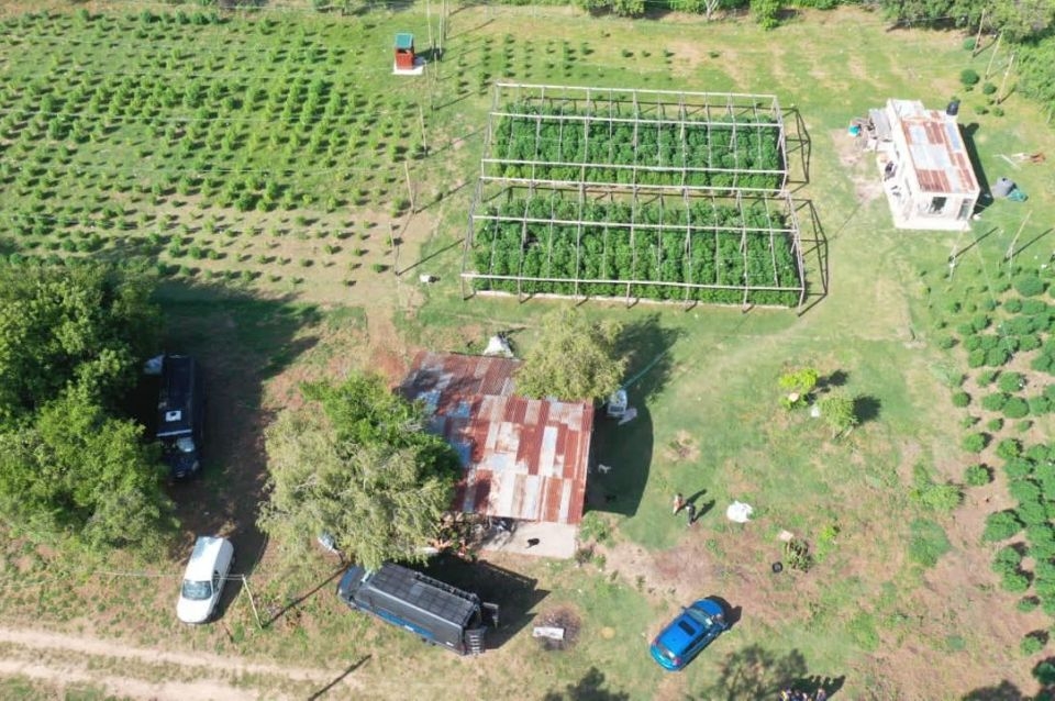 La misma investigación que llevó a esta detención hubo otros allanamientos, uno de ellos en un campo de Arroyo Leyes, donde descubrieron un vivero "modelo" de marihuana que contaba con guardias armados en el perímetro que custodiaban el lugar.