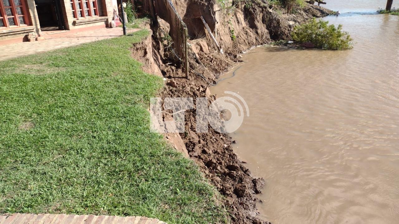 El fin de semana, un vecino que vive en la costa, en la zona de Colastiné Norte, escuchó un fuerte ruido, y descubrió que un importante socavón provocó que se derrumbara su patio y el de otros vecinos. En unos de los casos, una pileta de fibra de vidrio se perdió en el río.